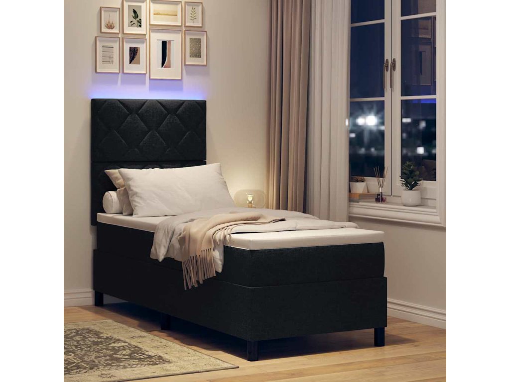 Postel s boxspringem s matrací s LED Černá 80 x 200 cm textil [3342902]