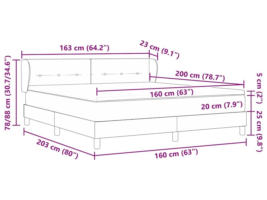 - Velikost matrace: Manželská postel king (160 cm x 200 cm nebo 63" x 79")