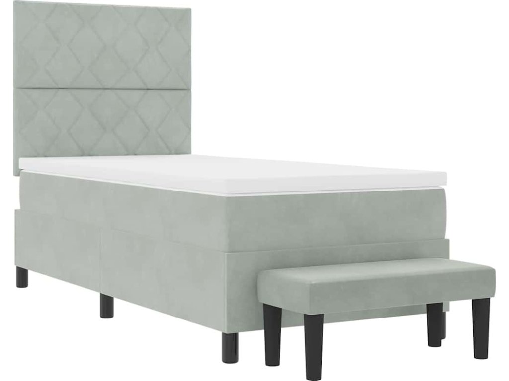 Postel s boxspringem s matrací Světle šedá 90 x 190 cm samet [3344546]