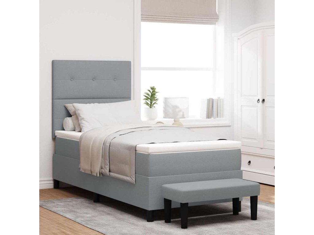 Postel s boxspringem s matrací Světle šedá 90 x 190 cm textil [3344030]