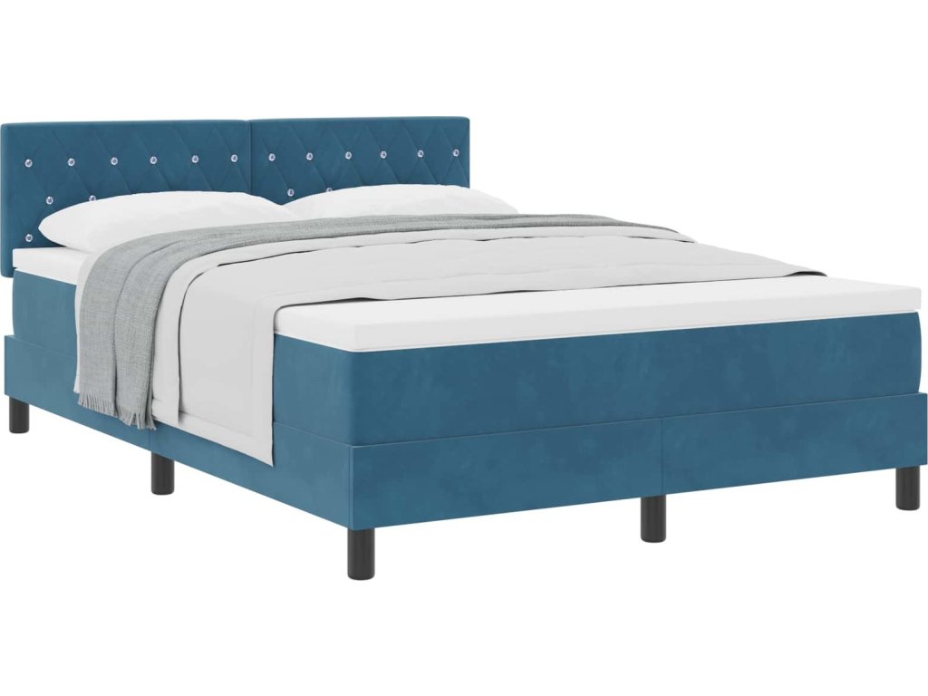 Postel s boxspringem s matrací Tmavě modrá 140 x 190 cm samet [3339108]