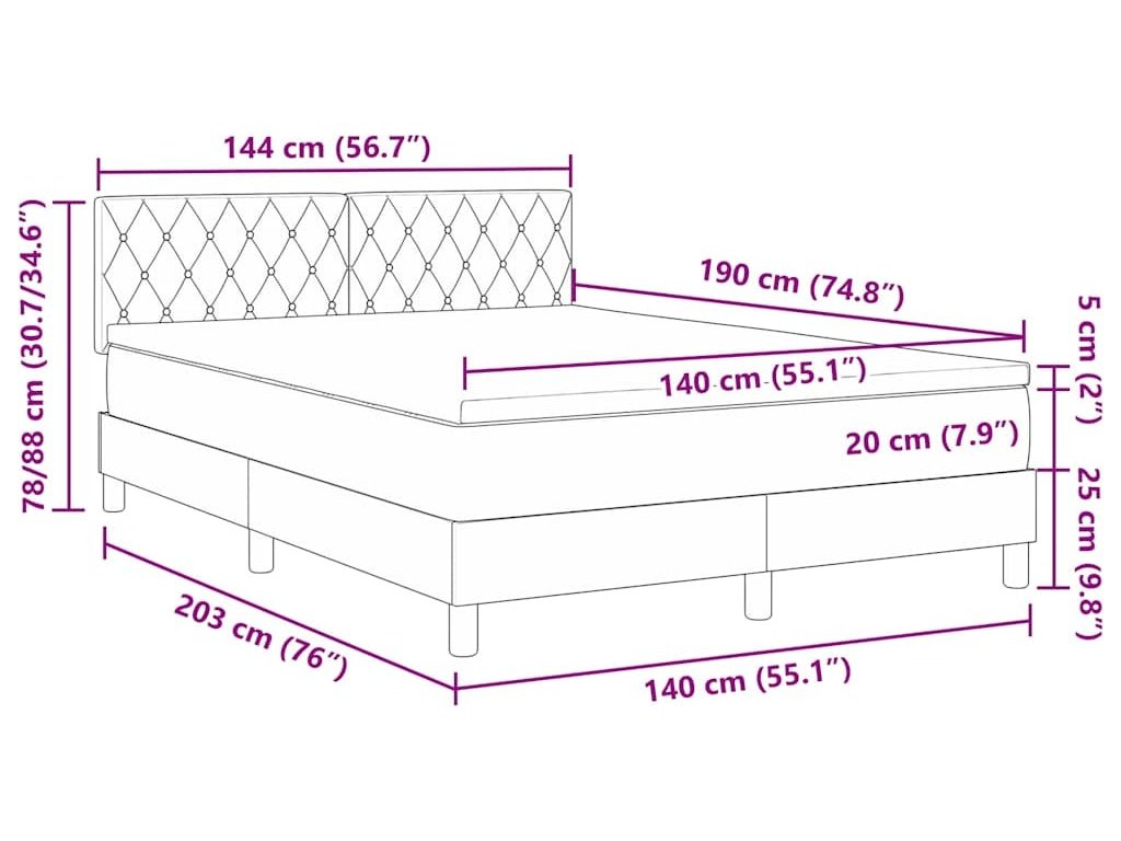 - Velikost matrace: Krátká dvojpostel (140 cm x 190 cm nebo 55" x 75")