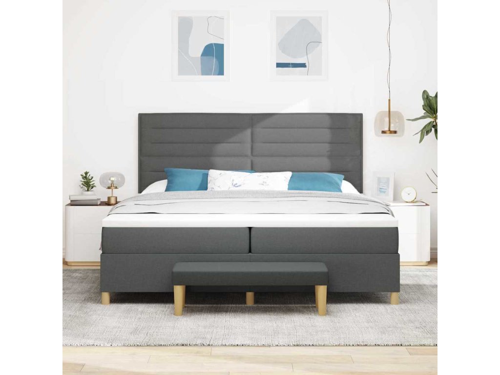 Postel s boxspringem s matrací Tmavě šedá 200 x 200 cm textil [3344248]