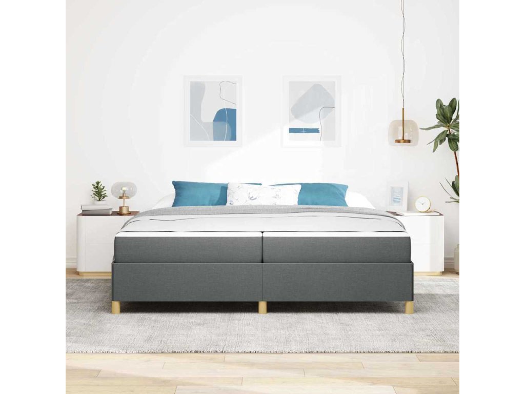 Rám postele s matrací Tmavě šedá 200 x 200 cm textil [3398963]