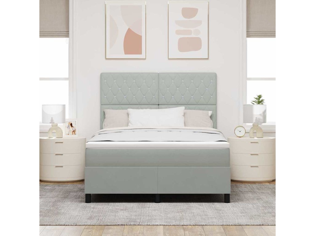 LED box pružinová postel s čelo Světle šedá 140 x 190 cm textil [3343244]