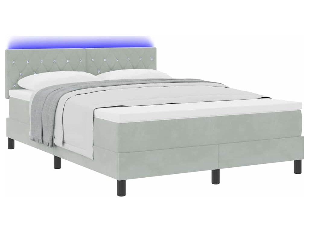 LED box pružinová postel s LED Světle šedá 160 x 200 cm samet [3342596]