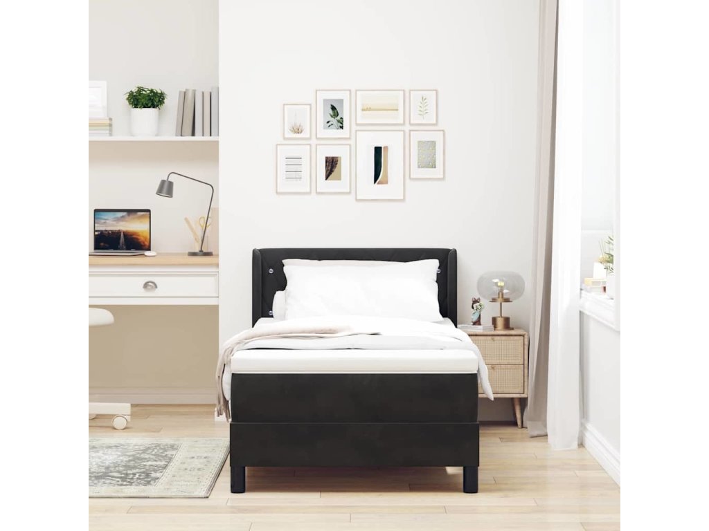 Postel s boxspringem s matrací Černá 190 x 90 cm Polyester [3341392]