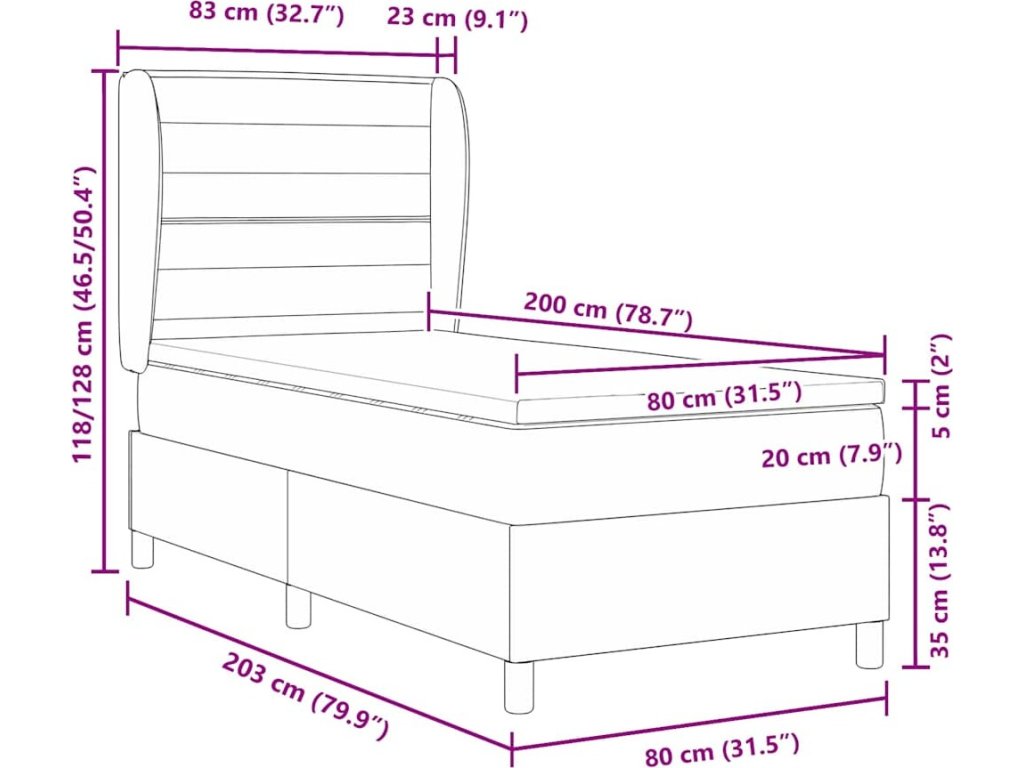 - Velikost matrace: Malé jednolůžko (80 cm x 200 cm nebo 31" x 79")