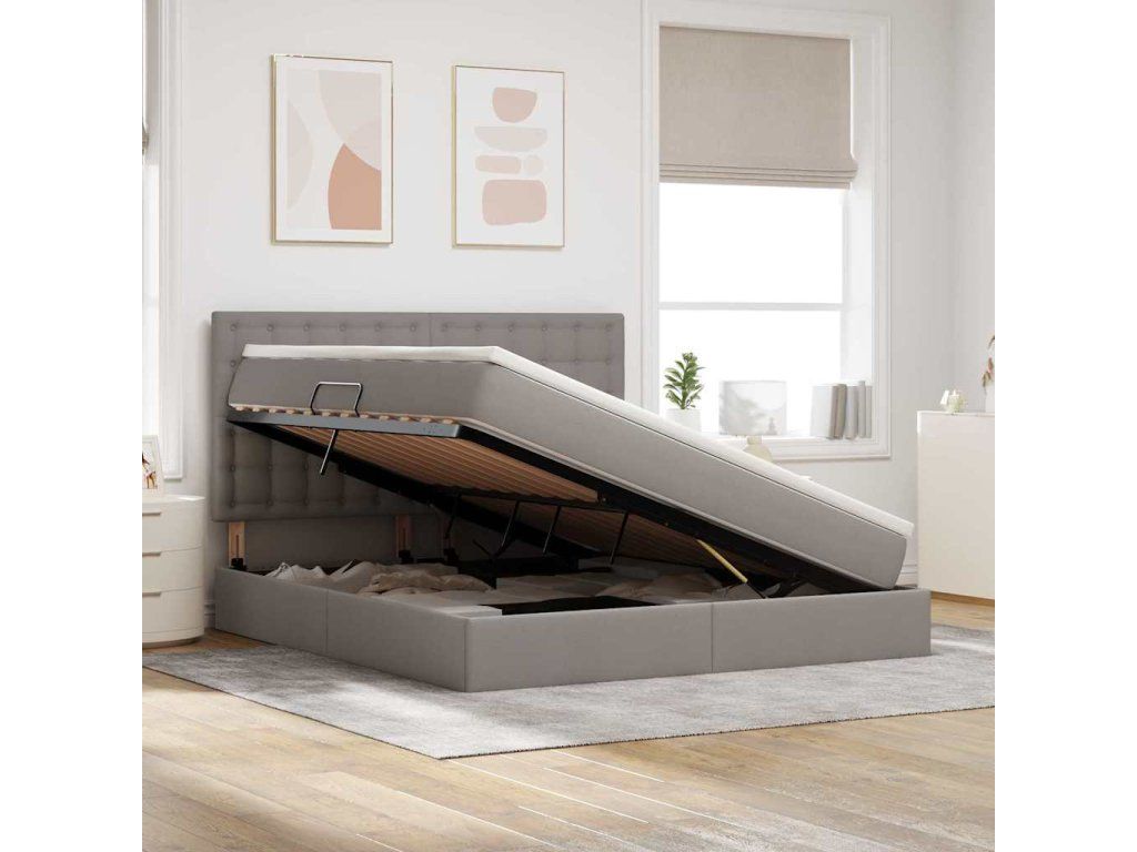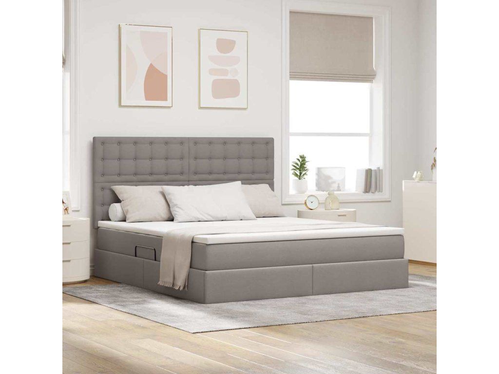 Postel s úložným prostorem a matrací s čelo Taupe 180 x 200 cm [3371925]