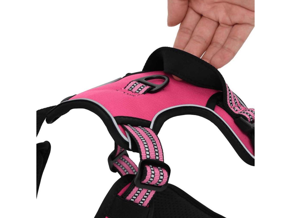 - Reflexní proužky pro dobrou viditelnost: Tento postroj pro psy má na povrchu reflexní proužky, které zajišťují bezpečnou procházku ve dne i v noci.