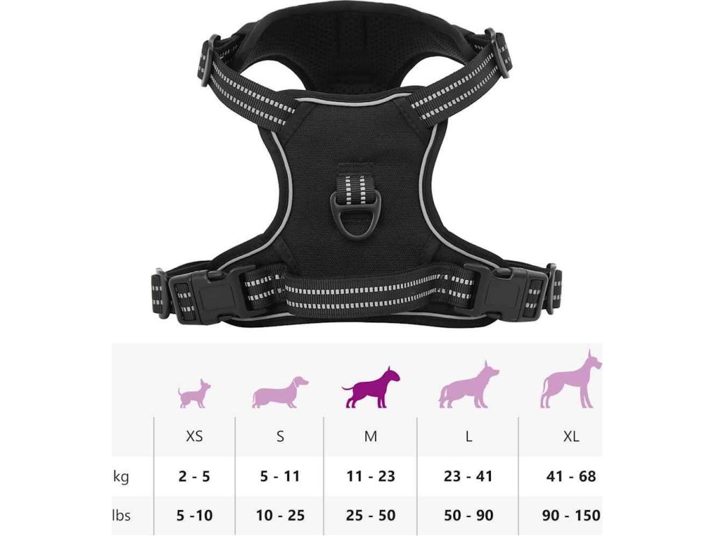 - Bezpečný a pohodlný: Tento postroj pro psy je vyroben z polyesteru a je polstrován měkkým polštářem, který chrání kůži vašeho psa. Prodyšná síťovina navíc udržuje psa v pohodlí a komfortu po celý den.