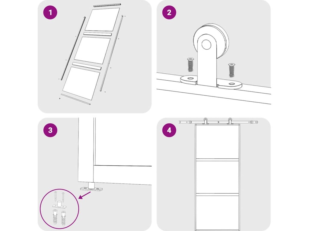 - Způsob instalace je vysvětlen v našem instalačním manuálu ke dveřím a sadám příslušenství.