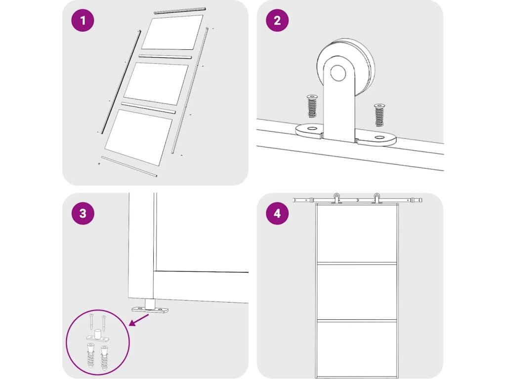 Dveře je možné nasadit pouze v kombinaci se setem kování pro posuvné dveře. Vhodné sety kování pro posuvné dveře najdete v našem obchodě (SKU: 145262–145263). Způsob montáže si můžete prohlédnout v našem instalačním manuálu pro dveře a set kování pro posuvné dveře.