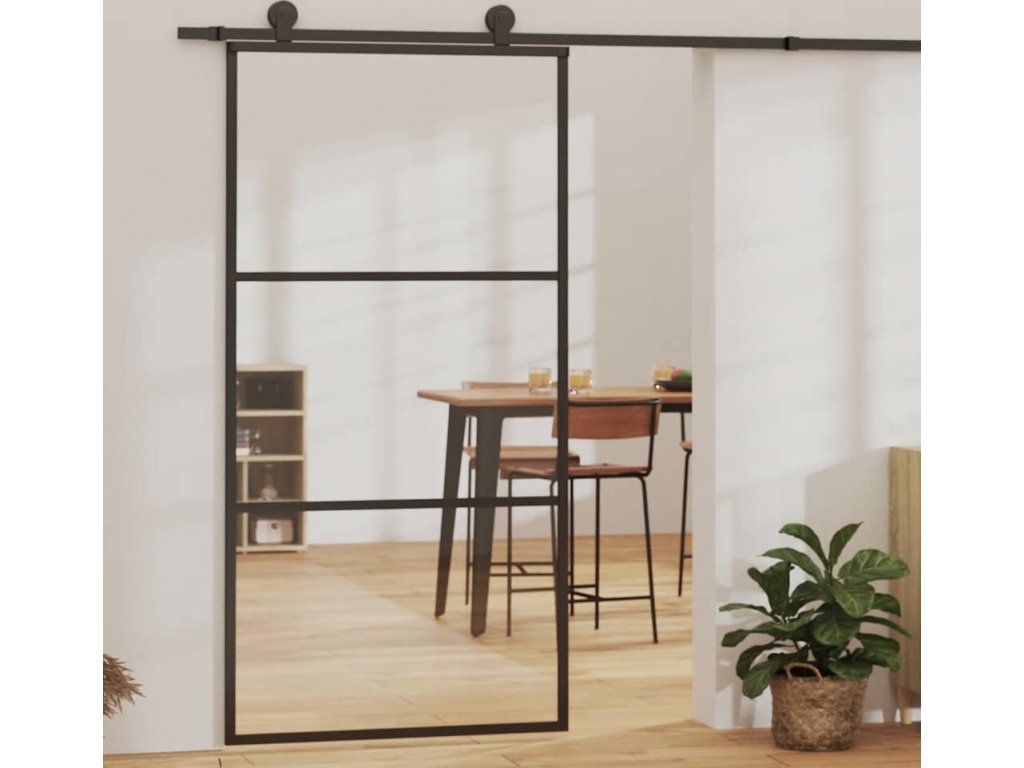Posuvné dveře ESG sklo a hliník 102 x 205 cm černé [151010]