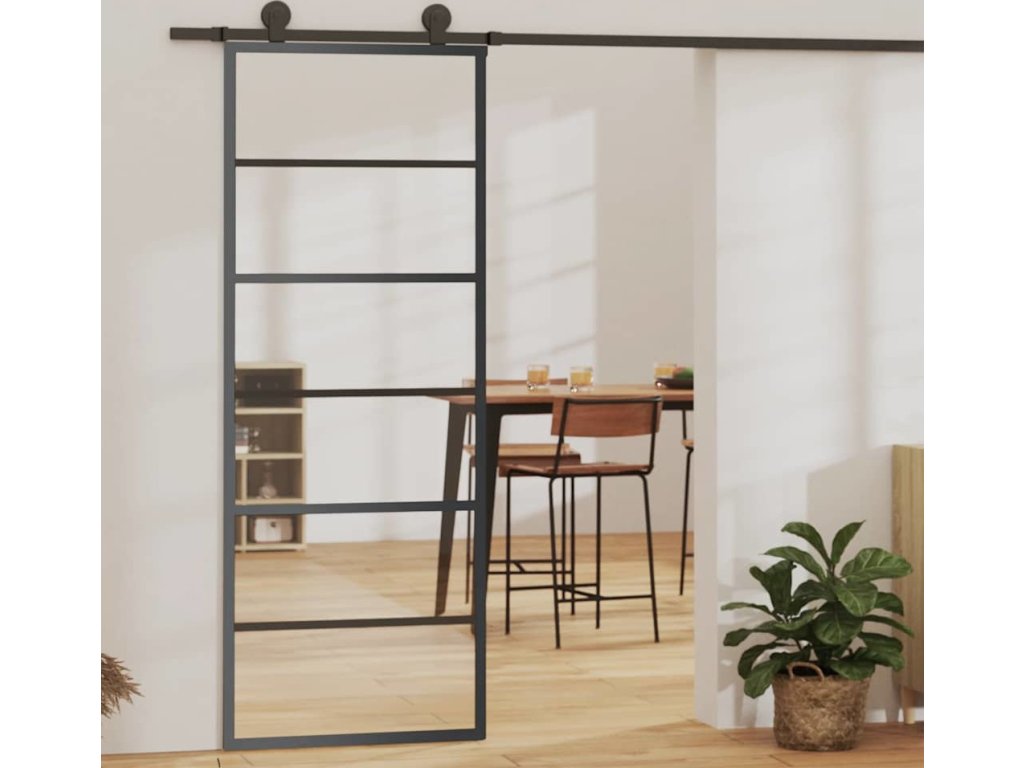 Posuvné dveře ESG sklo a hliník 76 x 205 cm černé [151014]