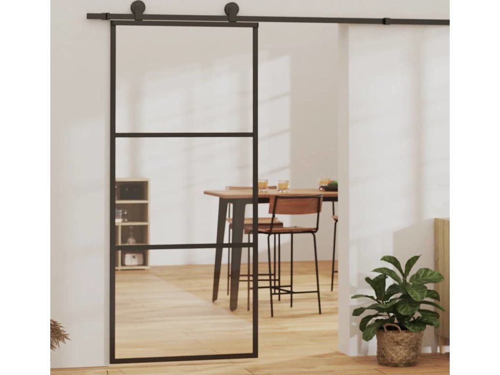 Posuvné dveře ESG sklo a hliník 90 x 205 cm černé [151009]