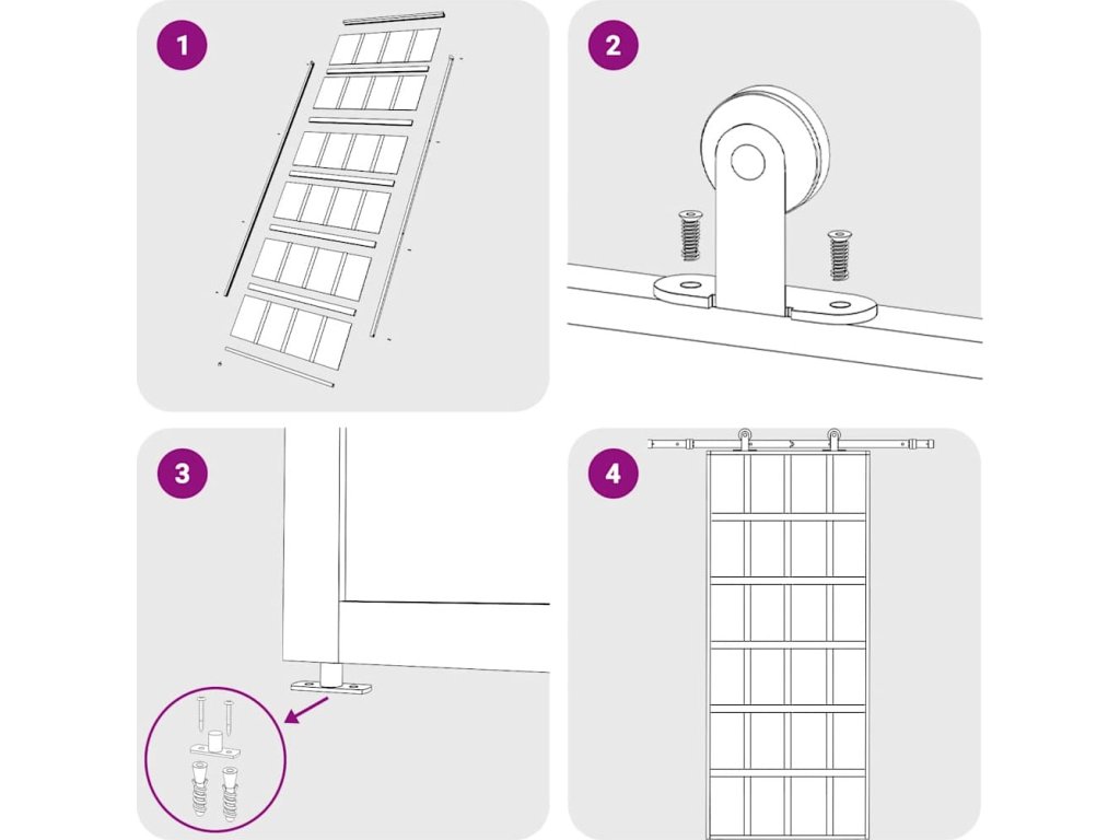 Dveře je možné nasadit pouze v kombinaci se setem kování pro posuvné dveře. Vhodné sety kování pro posuvné dveře najdete v našem obchodě (SKU: 145262–145263). Způsob montáže si můžete prohlédnout v našem instalačním manuálu pro dveře a set kování pro posuvné dveře.