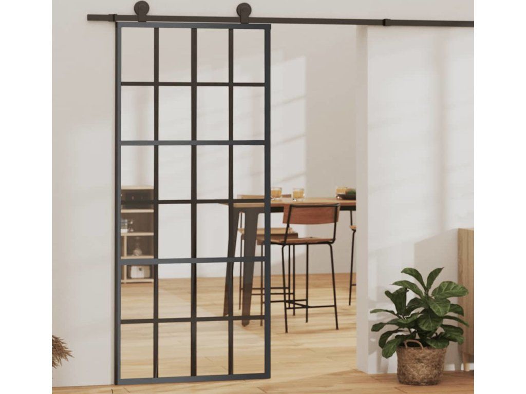 Posuvné dveře ESG sklo a hliník 90 x 205 cm černé [151021]