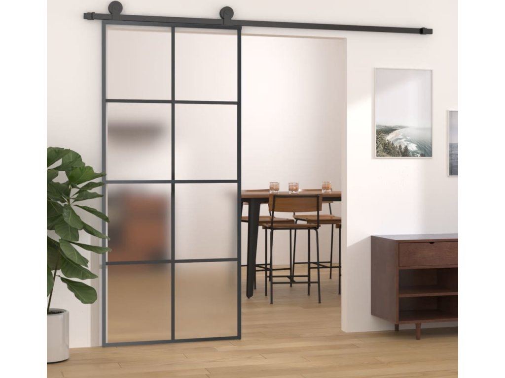 Posuvné dveře 90 x 205 cm mléčné ESG sklo a hliník [288065]
