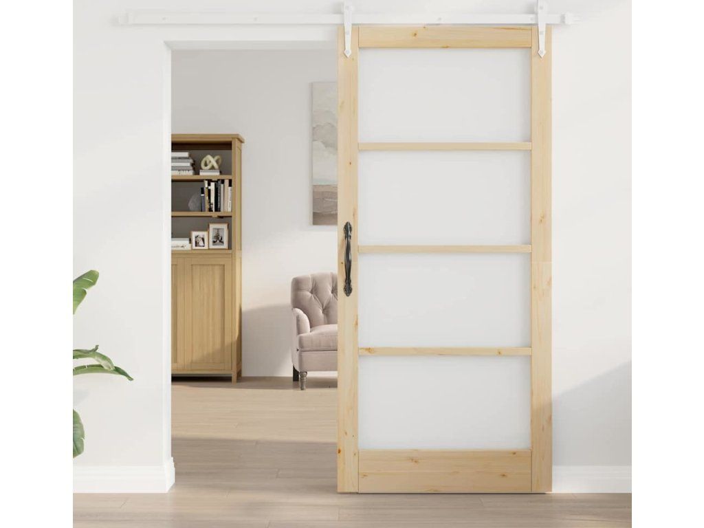 Posuvné dveře Přírodní 93 x 202 cm Masivní borové dřevo a sklo [3332427]