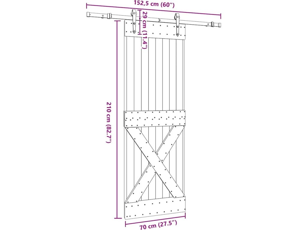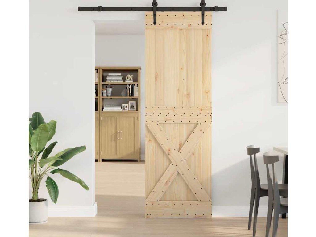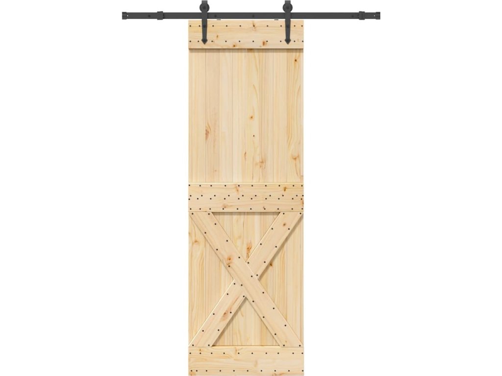 Posuvné dveře s kováním 70 x 210 cm masivní borové dřevo [3332784]