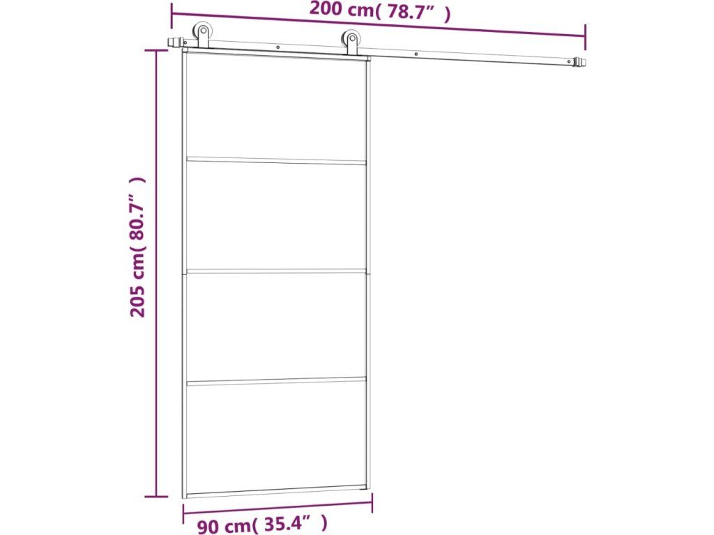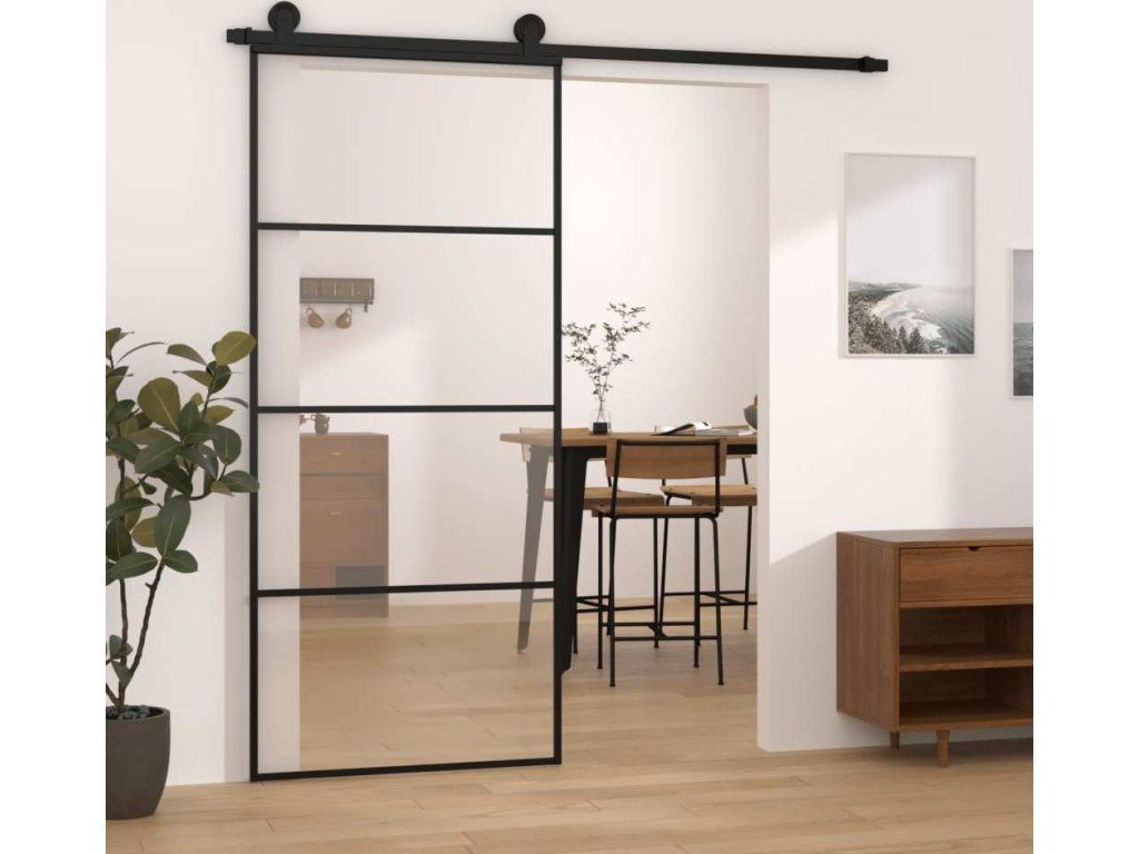 Posuvné dveře s kováním 90x205 cm ESG sklo a hliník [3152148]
