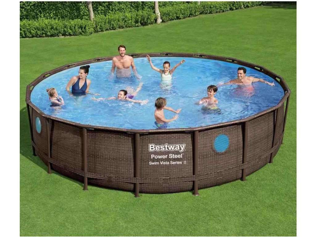 S bazénem Bestway Power Steel, jehož kulatý tvar poskytuje větší plochu pro plavání a hry, si užijete spoustu zábavy s rodinou či přáteli. Tento nadzemní bazén v sobě snoubí odolnost a styl a jeho potisk s imitací ratanu dodá vaší zahradě či dvorku nádech luxusu.