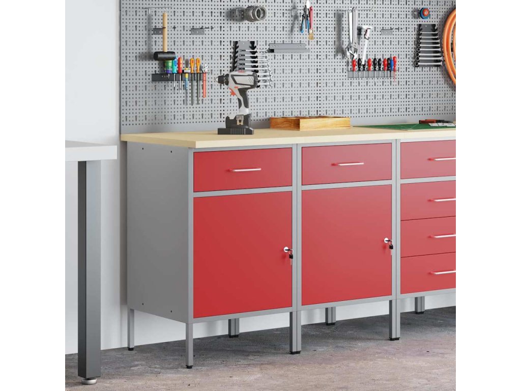 Pracovní skříň se zámkem 2 pcs Červená a šedá 100 x 55 x 85 cm [3321361]