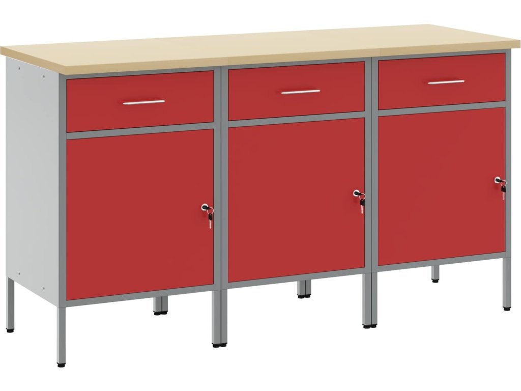 Pracovní skříň se zámkem 3 pcs Červená a šedá 150 x 55 x 85 cm [3321367]
