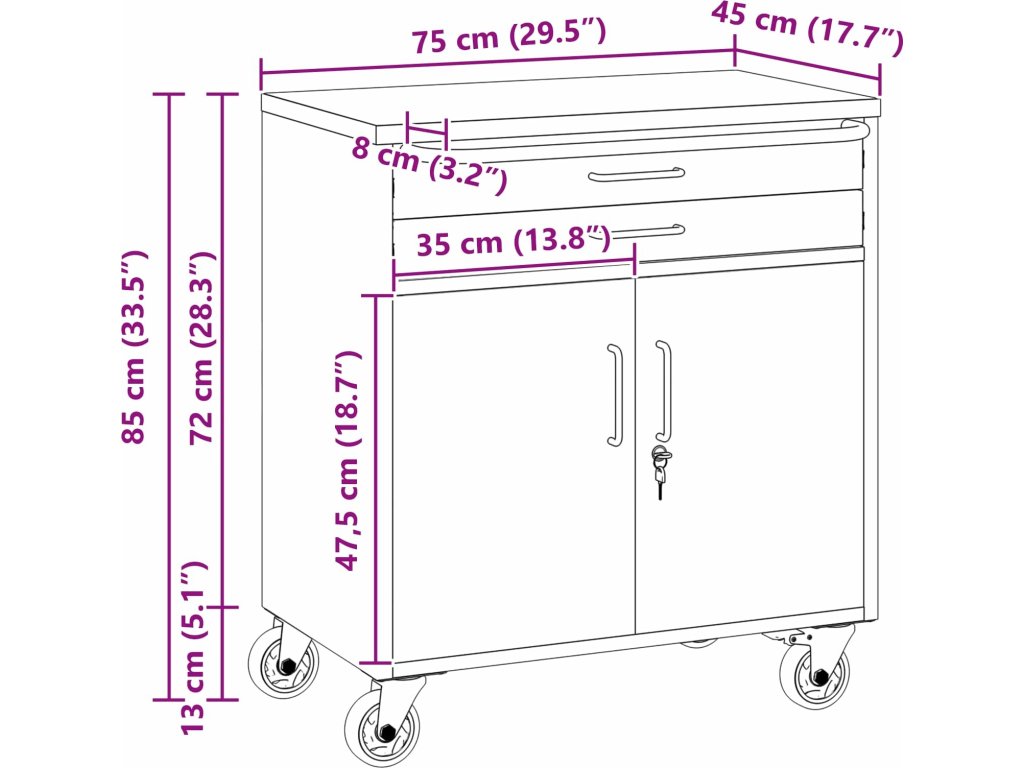 - Víceúčelové úložiště: Skříň má spoustu oddělení, šuplíků a polic, což nabízí skvělá organizační řešení. Efektivně uspořádá nástroje a materiály, což vám usnadní práci a zajistí, že všechno bude na místě. Jejím chytrým designem vyhovíte různým potřebám, od velkých nástrojů po malá příslušenství, takže je nepostradatelná pro uspořádané pracovní prostory.