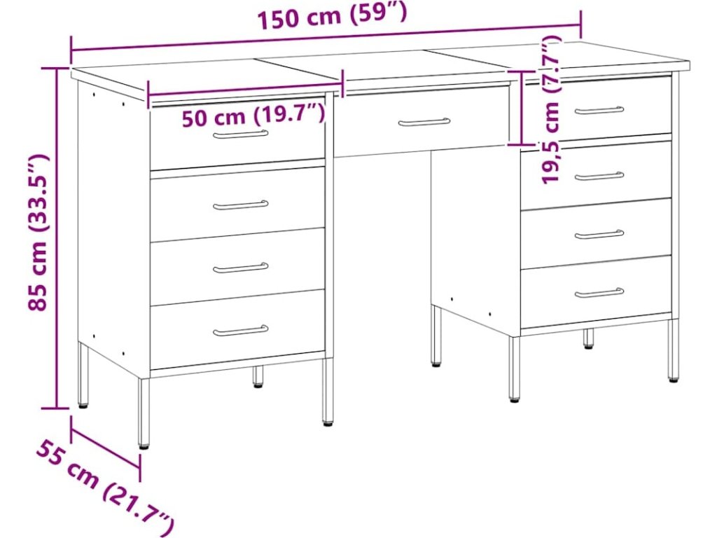 - Celkové rozměry: 150 x 55 x 85 cm (D x Š x V)