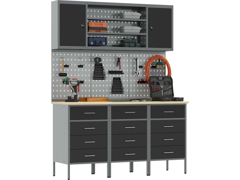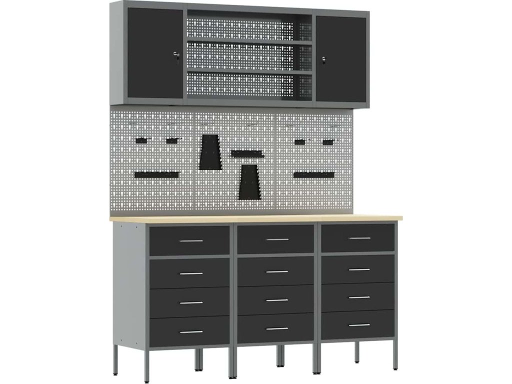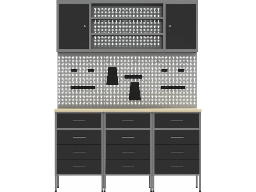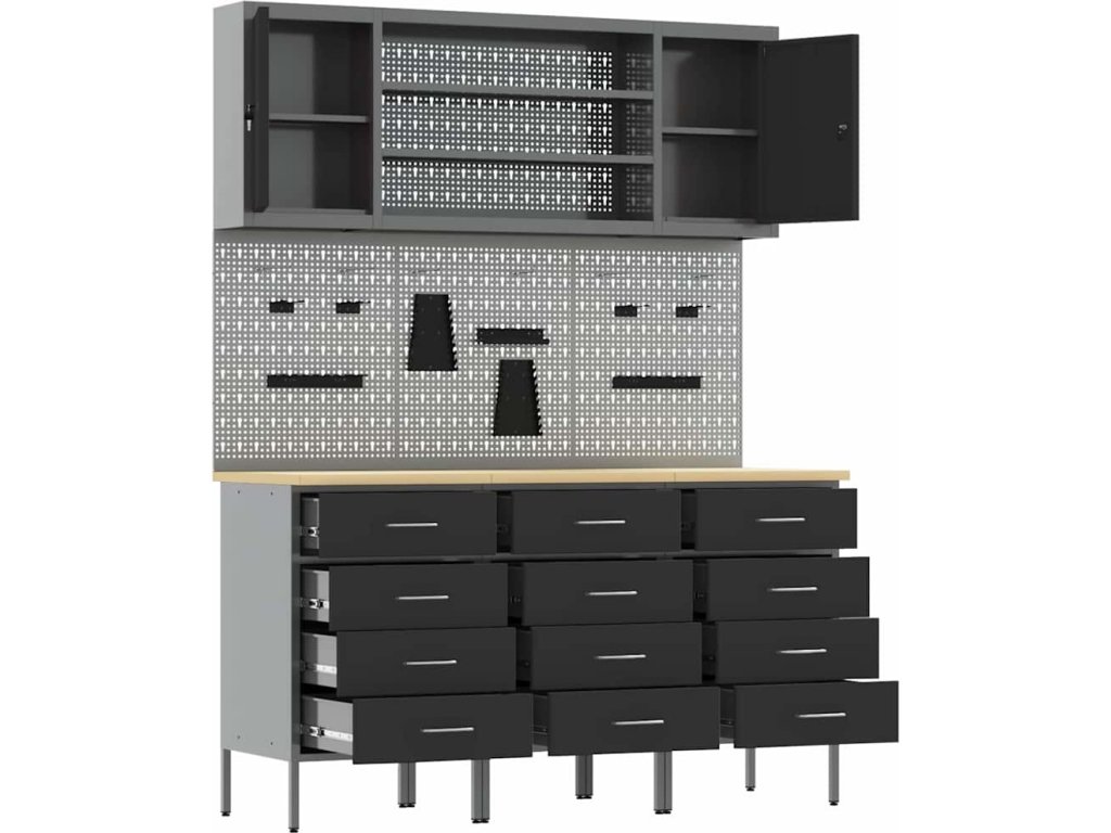 - Víceúčelové úložiště: Skříň má spoustu oddělení, šuplíků a polic, což nabízí skvělá organizační řešení. Efektivně uspořádá nástroje a materiály, což vám usnadní práci a zajistí, že všechno bude na místě. Jejím chytrým designem vyhovíte různým potřebám, od velkých nástrojů po malá příslušenství, takže je nepostradatelná pro uspořádané pracovní prostory.
