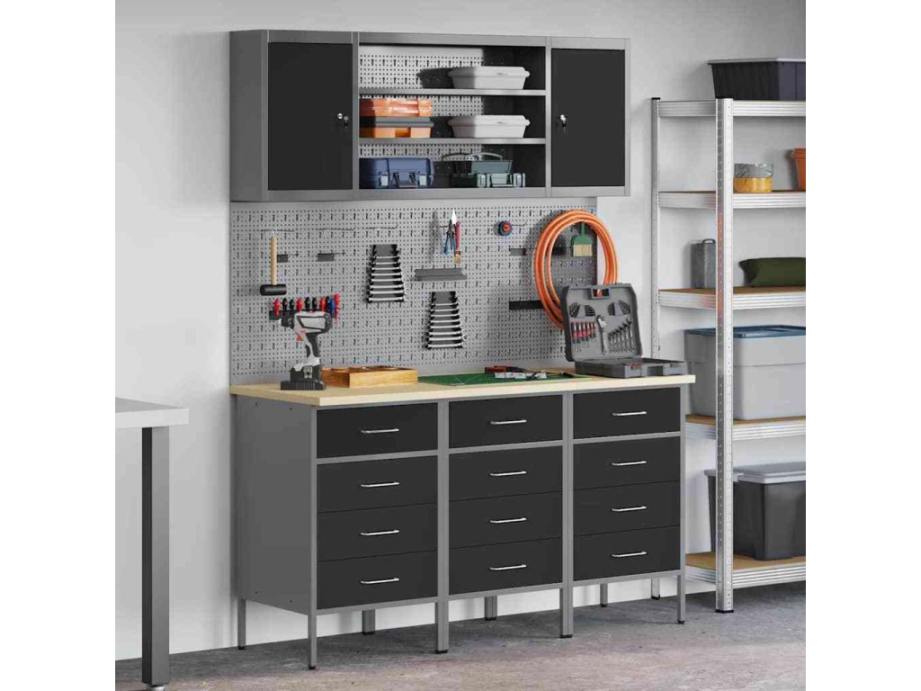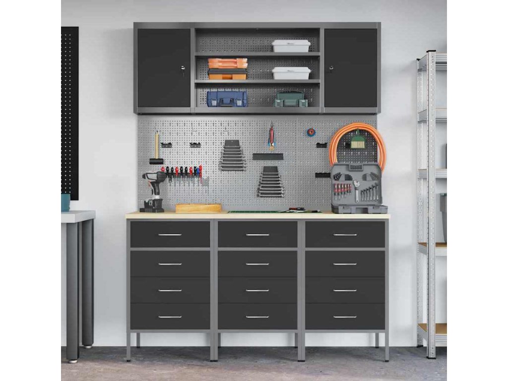 Pracovní skříň se zásuvkou 7 pcs Černá Inženýrské dřevo a ocel [3321436]