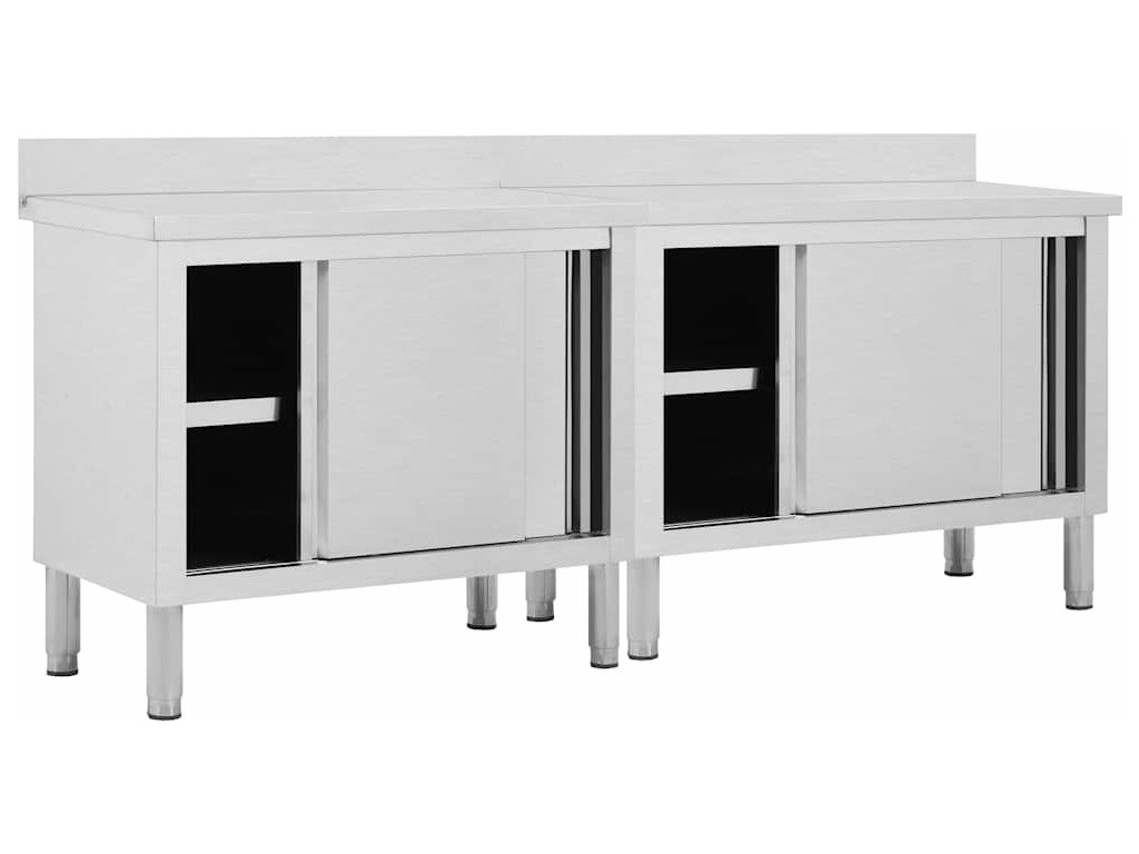 Kuchyňská skříňka z nerezové oceli je mimořádně odolná, stabilní a snadno se čistí. Je ideální pro zařízení, která vyžadují vysoké hygienické standardy. Velký úložný prostor vám umožní snáze udržovat vaši kuchyň uspořádanou a čistou. Posuvná dvířka zajišťují pohodlný přístup ke všem uloženým ingrediencím.