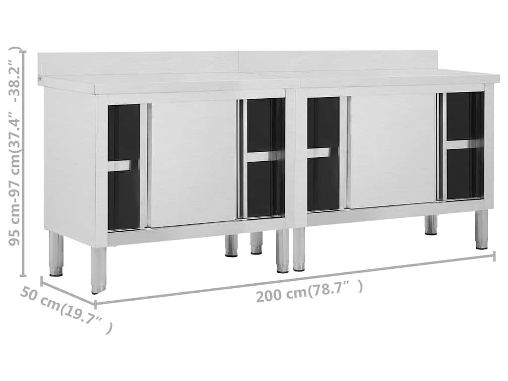 Pracovní stoly s posuvnými dvířky 2 ks 200x50x(95–97) cm nerez [3055902]