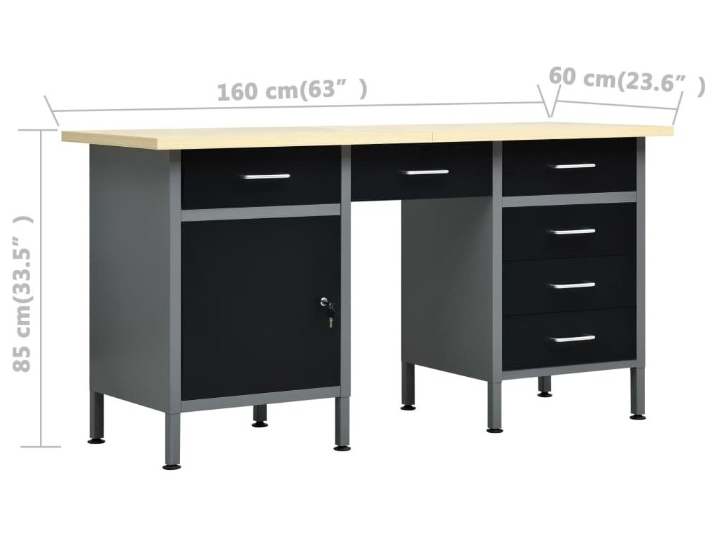 Velmi odolný pracovní stůl s velkým úložným prostorem má nosnost 500 kg. Jeho prostorná a odolná stolní deska představuje stabilní plochu pro všechny vaše pracovní činnosti. Tento pracovní stůl má 6 zásuvek, kam si můžete dobře uspořádat své nářadí, díly a příslušenství, jako jsou šrouby, hřebíky a lepicí pásky. Všechny zásuvky jsou vybavené kuličkovými pojezdy pro snadné vysouvání a zasouvání. Za uzamykatelnými dvířky jsou 2 police pro snadné ukládání různých nástrojů, jako jsou vrtačky, bubny s kabely a brusky. Výškově nastavitelné nohy vám umožňují přizpůsobit si výšku stolu. Celý ponk je vyrobený z prvotřídní oceli a kompozitního dřeva, a proto je mimořádně robustní, má dlouhou životnost a snadno se čistí. Jeho sestavení je snadné.