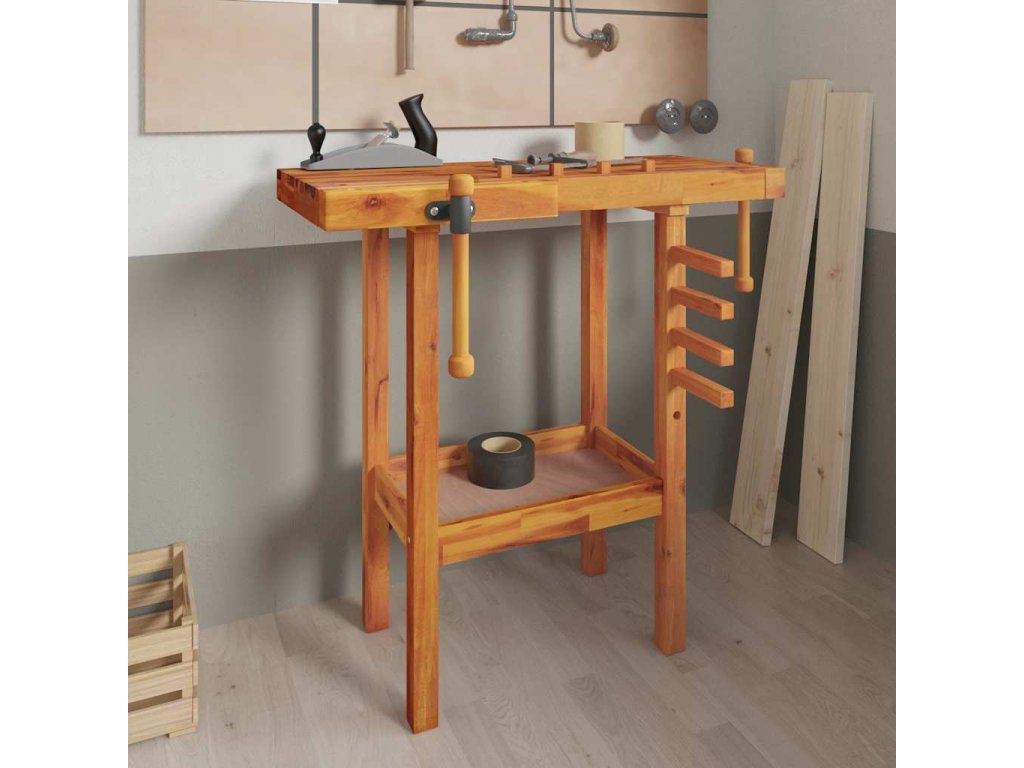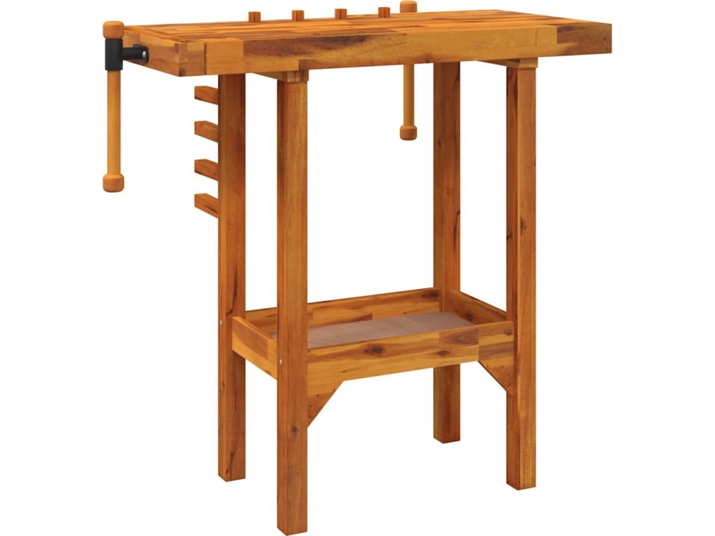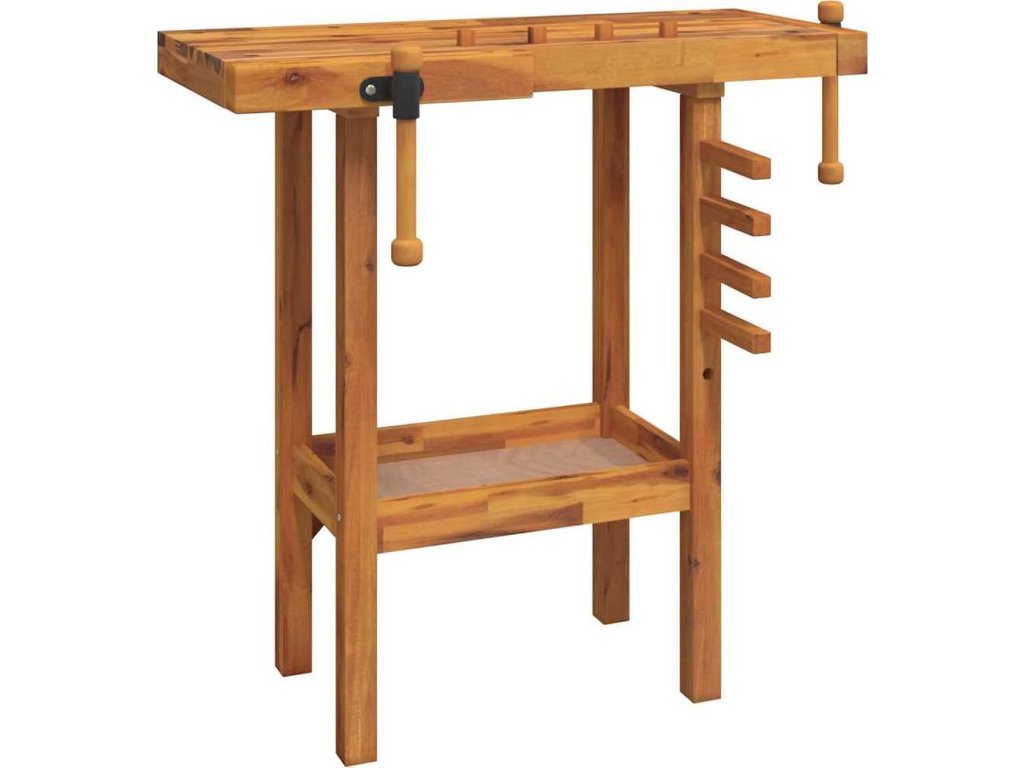 Pracovní stůl se svěráky 92 x 48 x 83 cm masivní akáciové dřevo [153319]