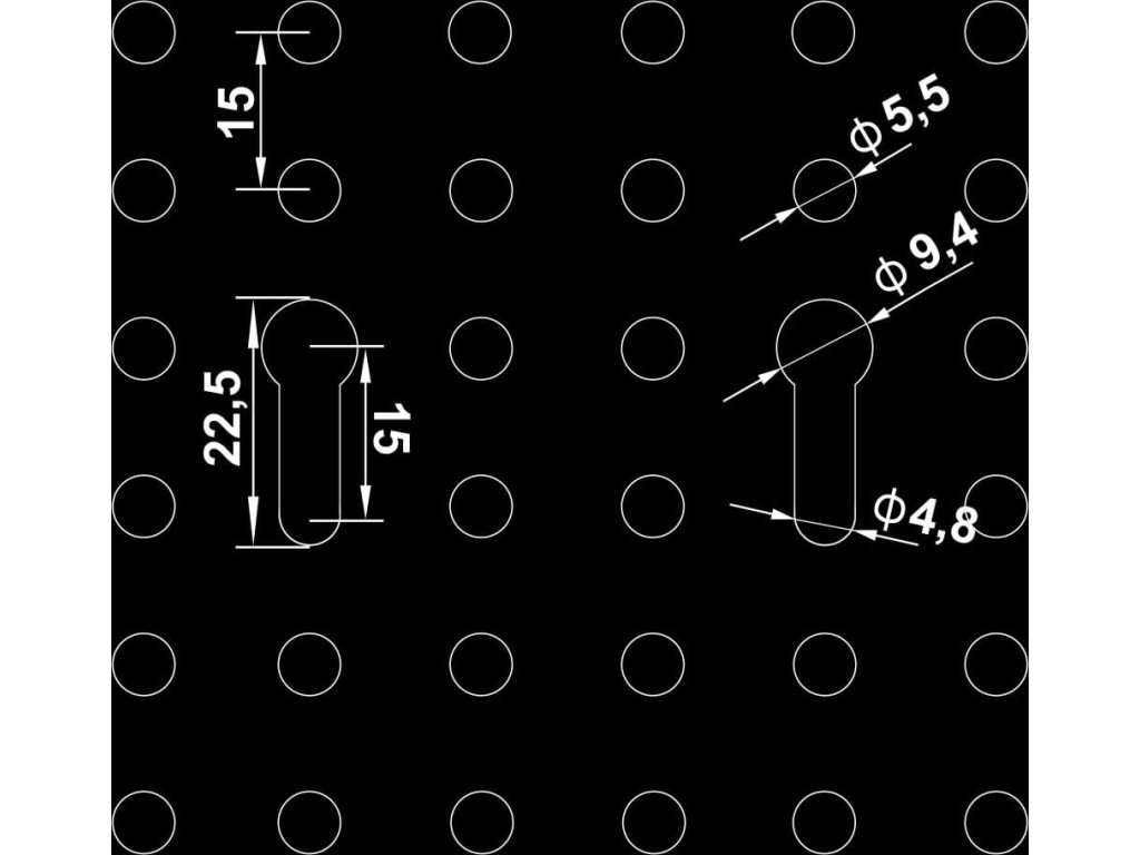 - Rozměry nekulatých otvory: 9,4 x 22,5 mm (Š x V)