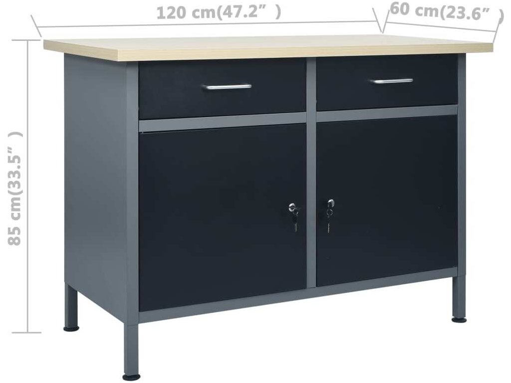 Velmi odolný pracovní stůl s velkým úložným prostorem má nosnost 500 kg. Tento pracovní stůl má 2 zásuvky, kam si můžete dobře uspořádat své nářadí, díly a příslušenství, jako jsou šrouby, hřebíky a lepicí pásky. Zásuvky jsou vybavené kuličkovými pojezdy pro snadné vysouvání a zasouvání. Pod nimi jsou 2 police a velká přihrádka za 2 uzamykatelnými dvířky pro větší nástroje, jako jsou vrtačky, bubny s kabely a brusky. Výškově nastavitelné nohy vám umožňují přizpůsobit si výšku stolu. Celý ponk je vyrobený z prvotřídní oceli a kompozitního dřeva, a proto je mimořádně robustní, má dlouhou životnost a snadno se čistí. Jeho sestavení je snadné.