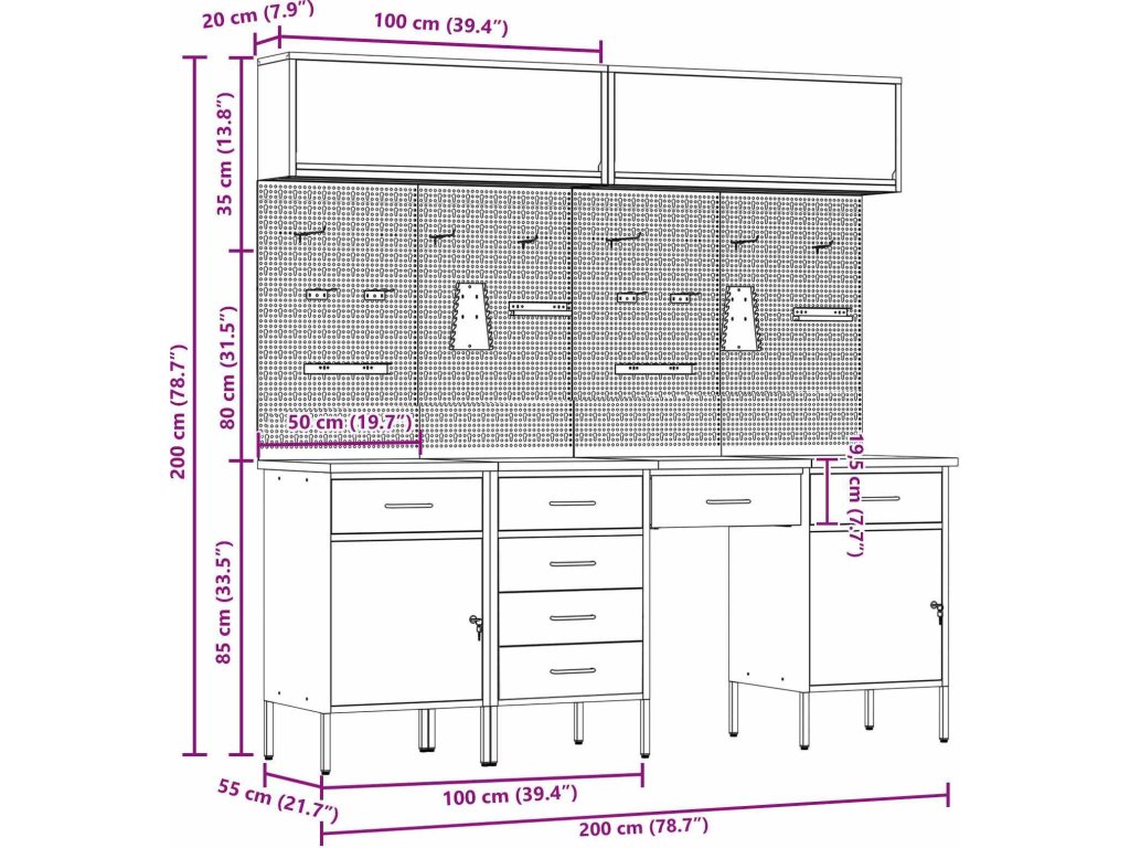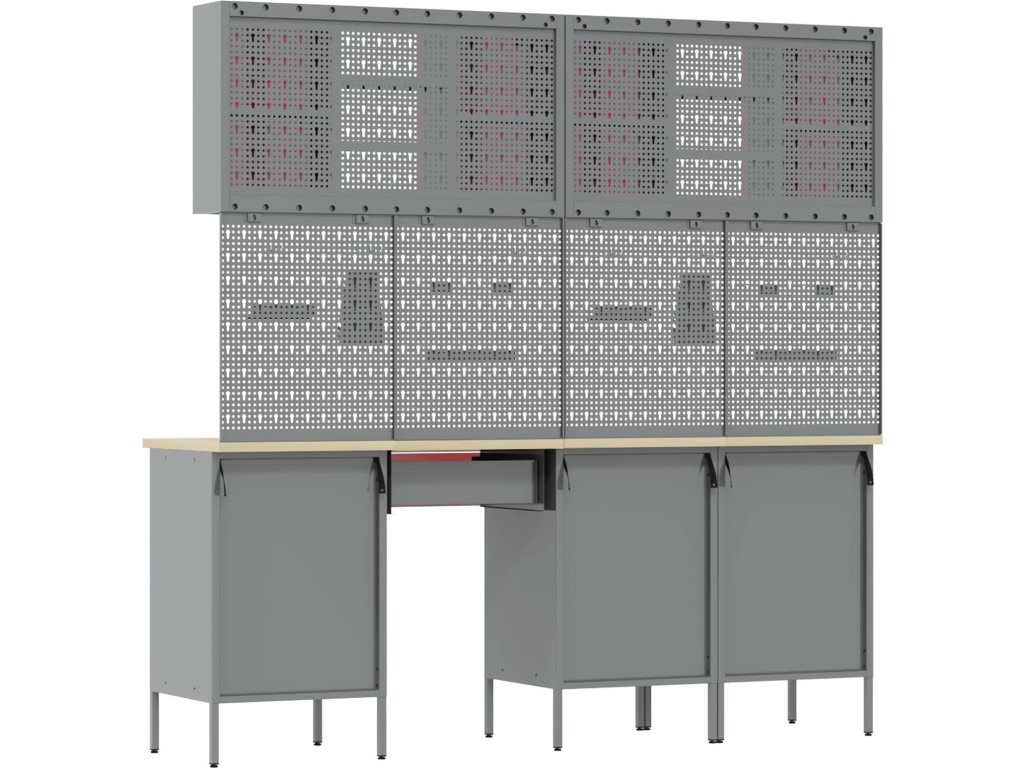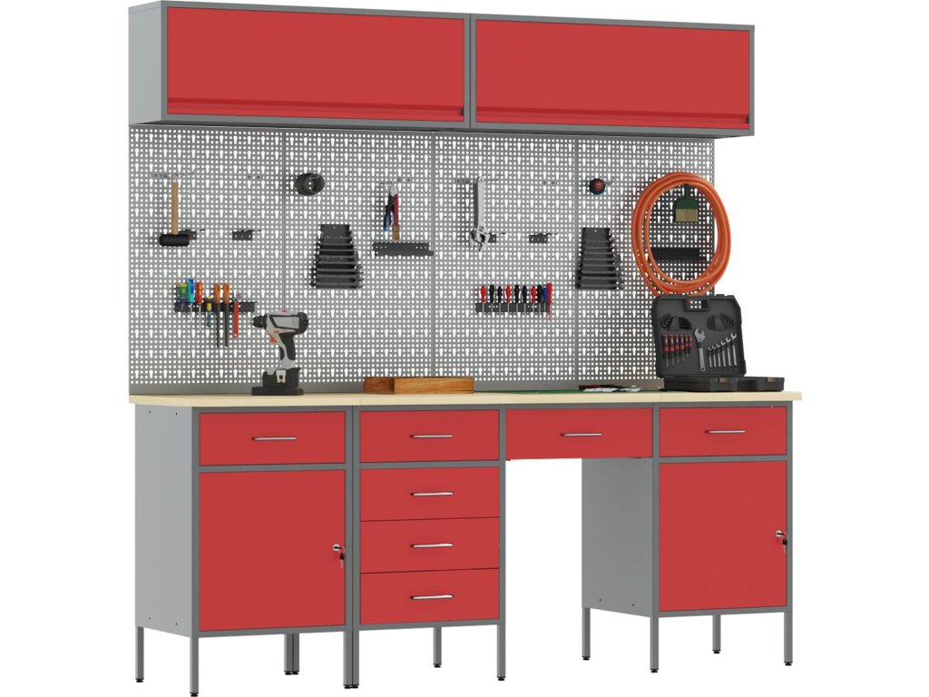 - Víceúčelové úložiště: Skříň má spoustu oddělení, šuplíků a polic, což nabízí skvělá organizační řešení. Efektivně uspořádá nástroje a materiály, což vám usnadní práci a zajistí, že všechno bude na místě. Jejím chytrým designem vyhovíte různým potřebám, od velkých nástrojů po malá příslušenství, takže je nepostradatelná pro uspořádané pracovní prostory.