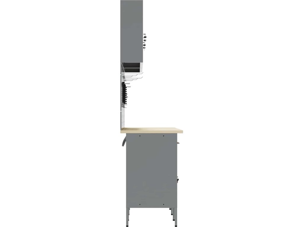 - Ocelový rám: Tento skříň s inženýrským dřevem a ocelí zaručuje pevnost a dlouhou životnost. Silný rám poskytuje solidní základ pro těžké nástroje a vybavení. I přes impozantní konstrukci se materiály pyšní štíhlým vzhledem, což potěší oko v každé dílně. Údržba je jednoduchá – stačí otřít vlhkým hadříkem, aby skříň vypadala jako nová.