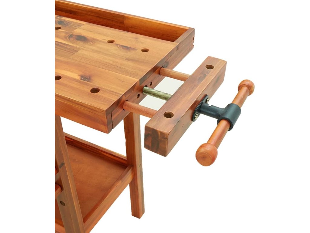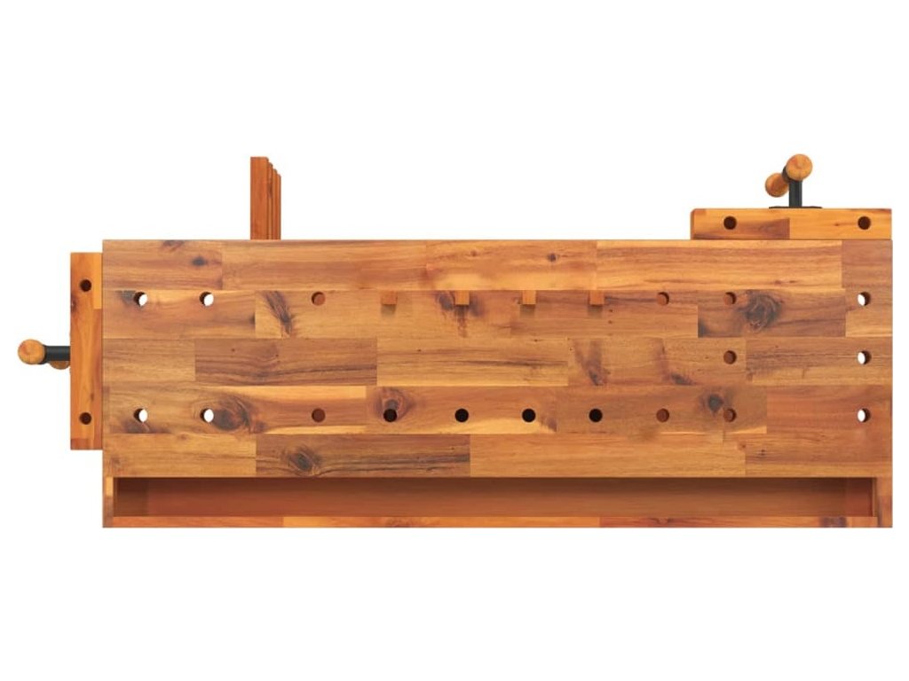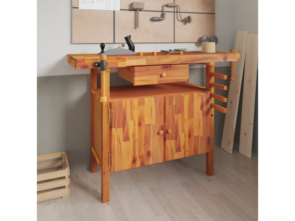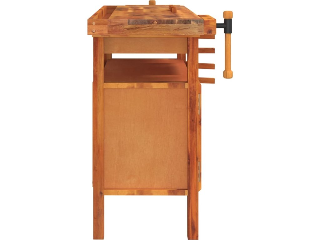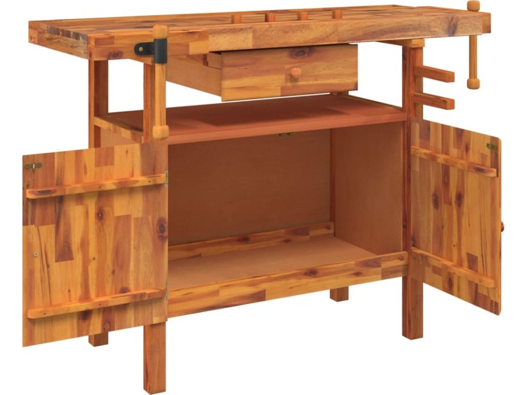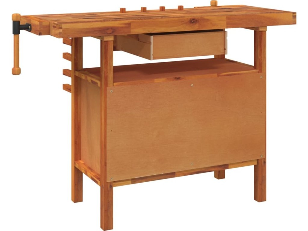 Pracovní stůl se zásuvkou a svěráky 124 x 52 x 83 cm masivní akácie [153321]