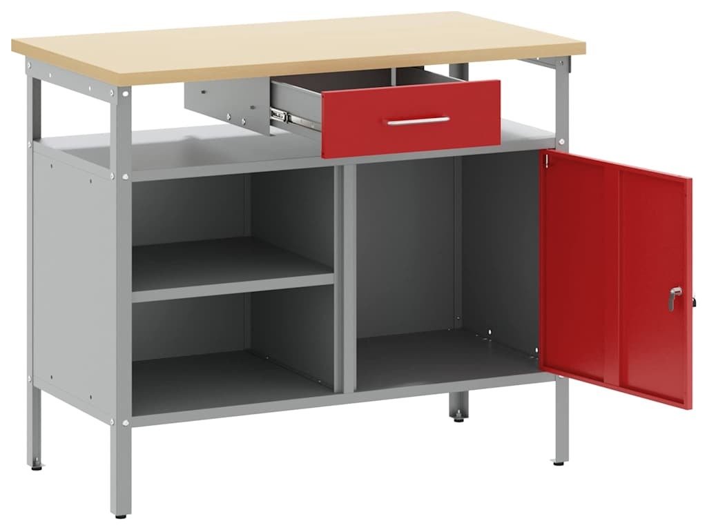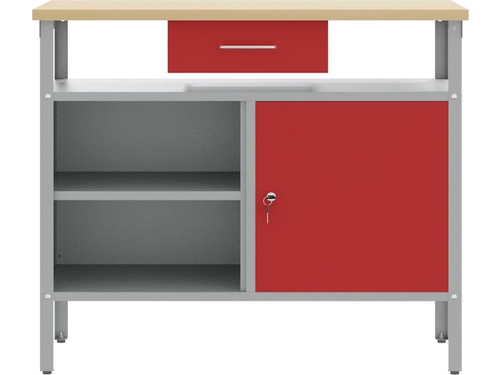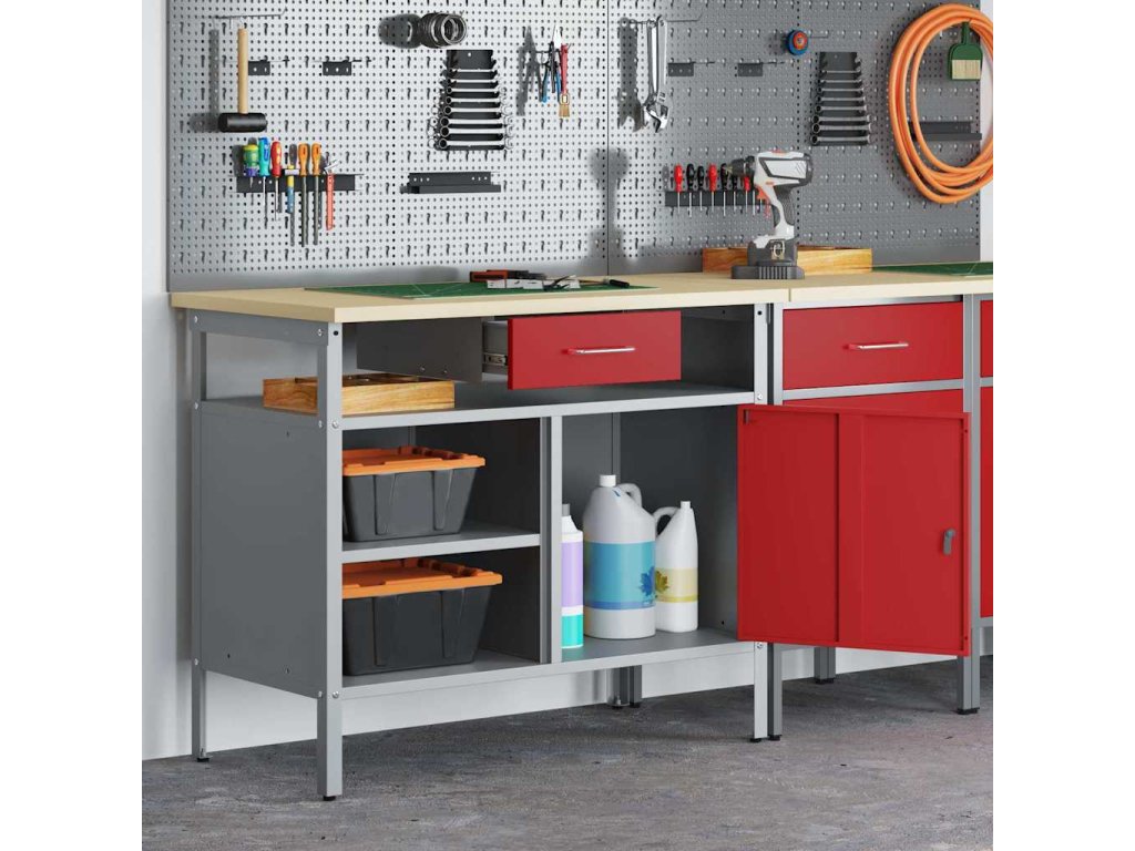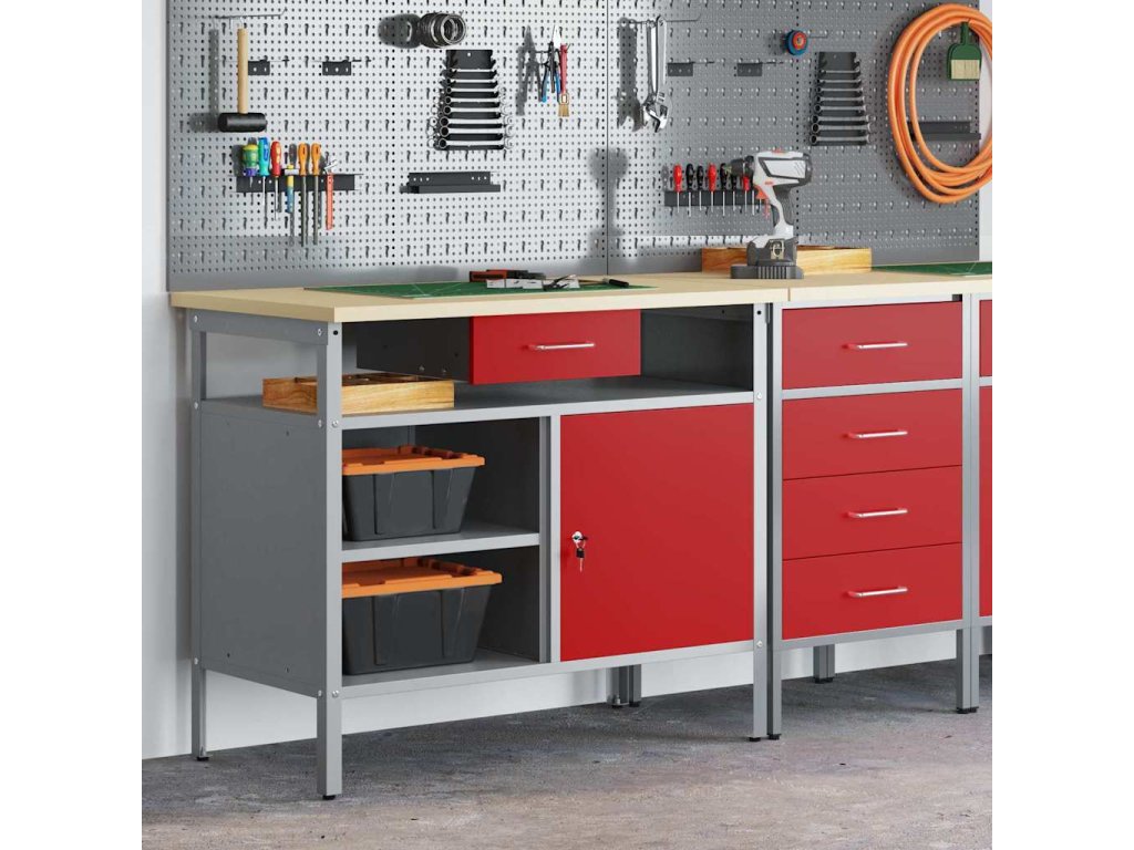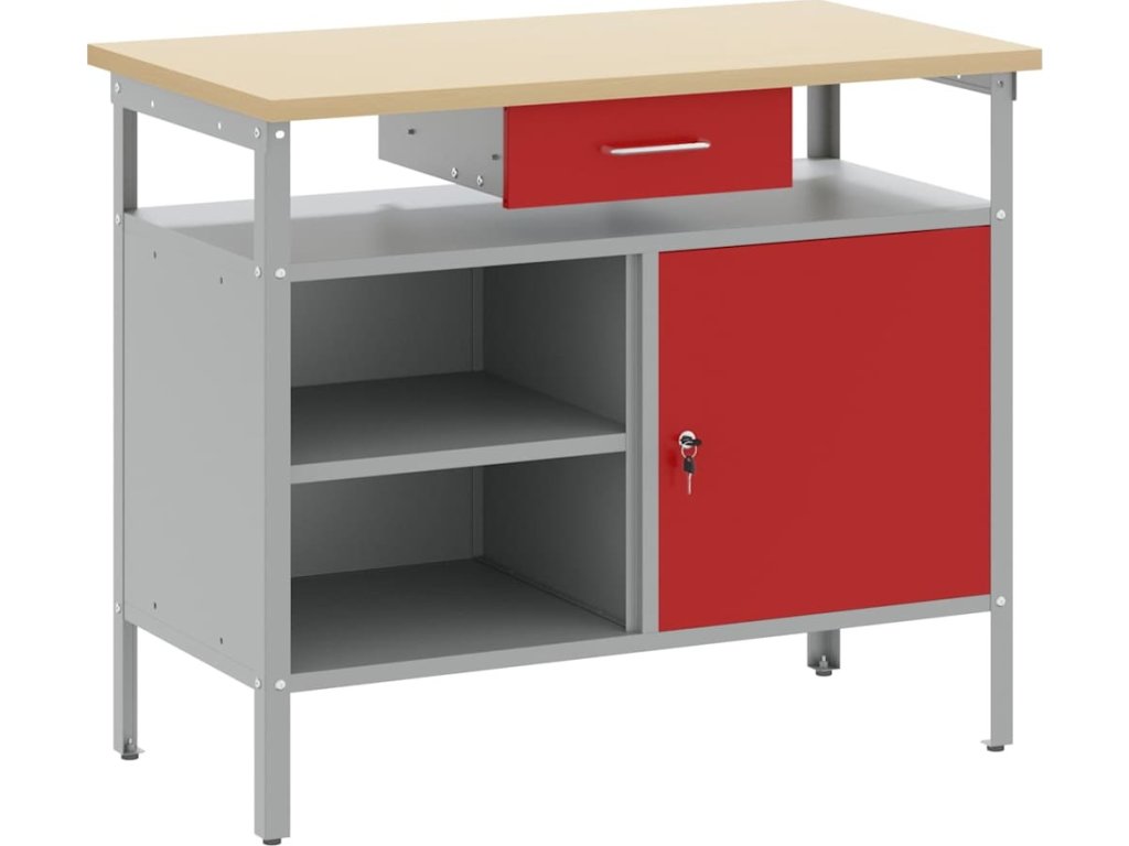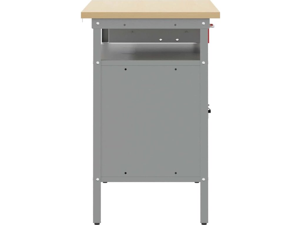 - Součásti: Stůl má ocelové police, které pomáhají s organizací a usnadňují přístup k potřebnému nářadí. Váčkové zámky chrání vaše cennosti, což je ideální pro pracovny, kde je důležitá efektivita a bezpečnost.