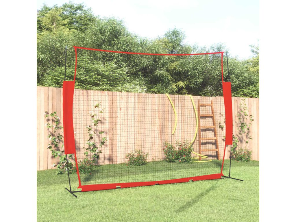 Přenosná baseballová síť červená/černá 369x107x271cm ocel a PES [93739]