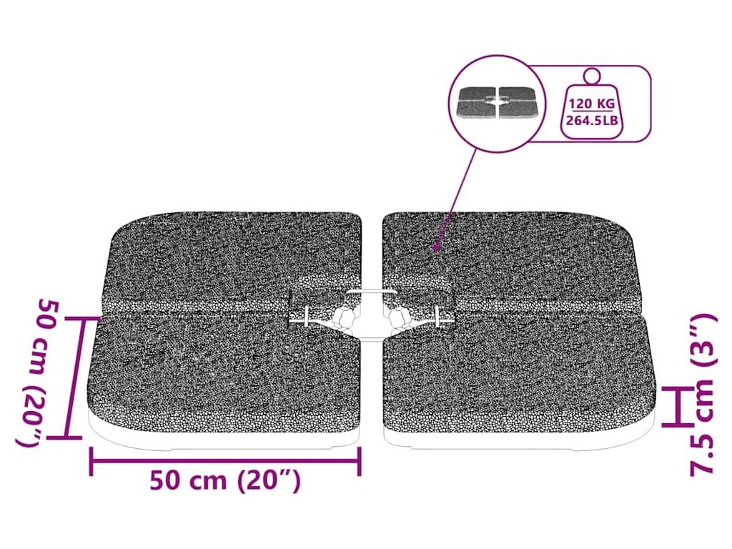- Rozměry každé části: 50 x 50 x 7,5 cm (D x Š x V)