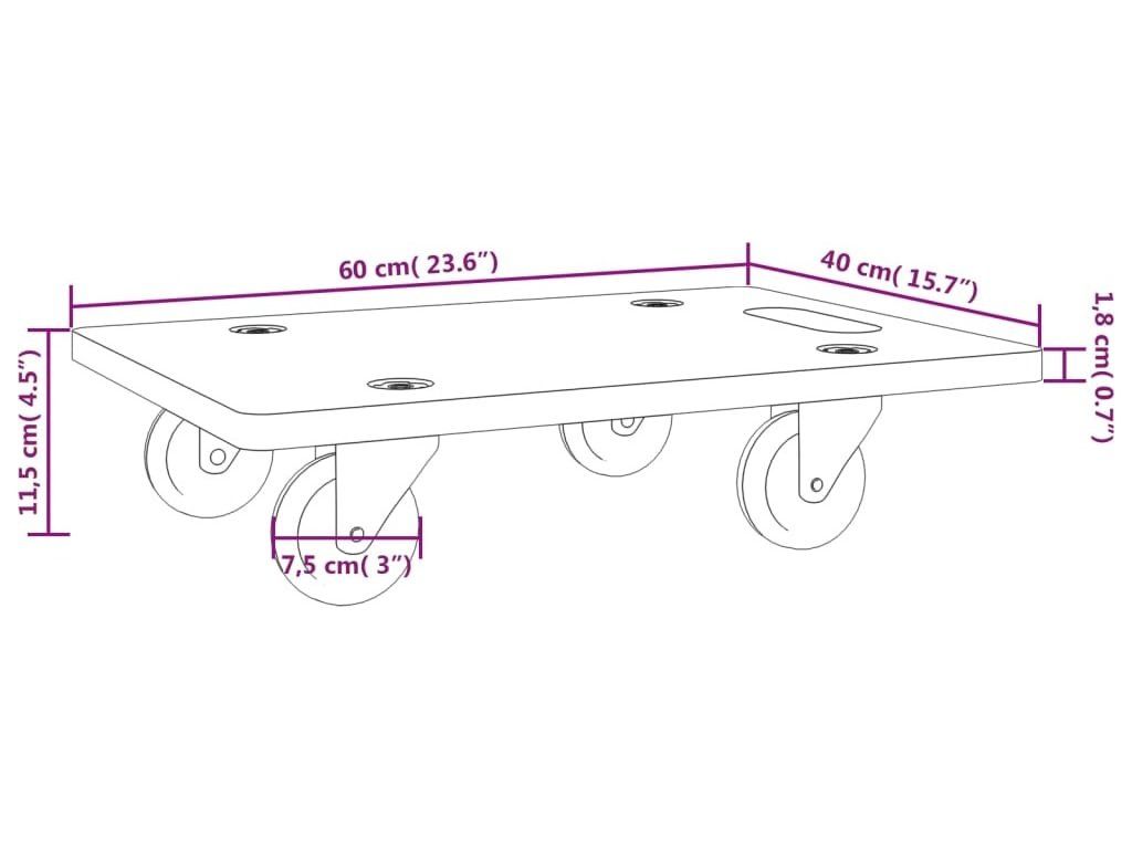 Přepravní vozíky 2 ks obdélníkové 60 x 40 x 11,5 cm 250 kg [154890]