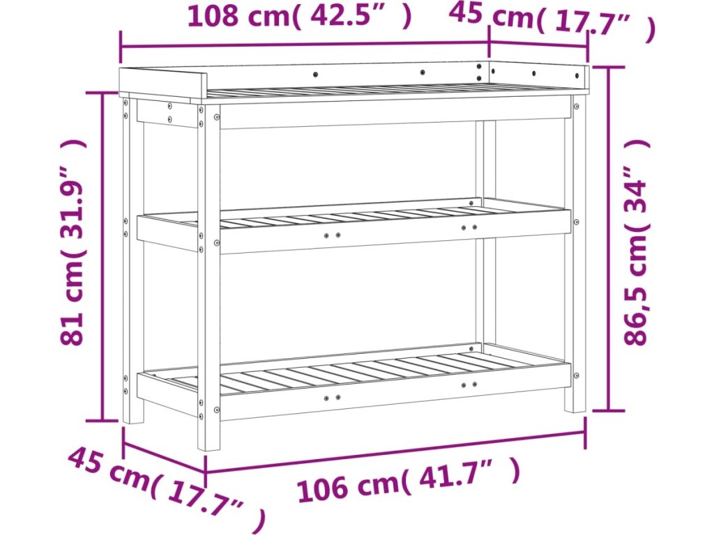 - Dostatek úložného prostoru: Pracovní stůl na přesazování s otevřenými policemi poskytuje dostatek prostoru pro související předměty, jako je drobné zahradnické nářadí, zemina, hnojiva apod.