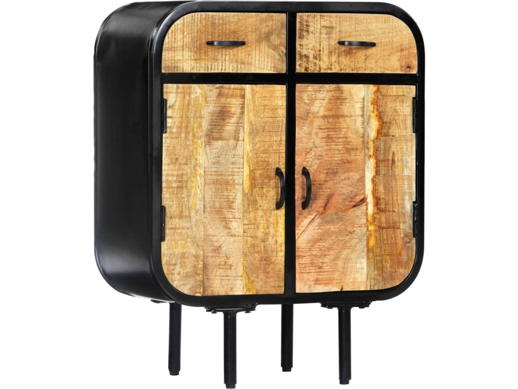 Příborník je vyroben z masivního mangovníkového dřeva. Byl naleštěn, natřen a nalakován tak, aby vynikl jeho půvabný a rafinovaný vzhled. Mangovník má husté a robustní tvrdé dřevo, jehož povrch se vyznačuje překrásnými hnědými či zlatavými pruhy a liniemi. Ocel s práškovým nástřikem dodává příborníku na odolnosti a prodlužuje jeho životnost. Nábytek se navíc snadno sestavuje a k jeho čištění vám postačí navlhčený hadřík. Povzneste své bydlení na novou úroveň s naší elegantní skříňkou se zásuvkami!