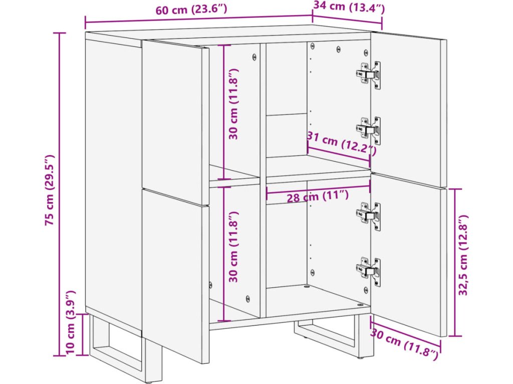 - Rozměry: 60 x 34 x 75 cm (D x Š x V)