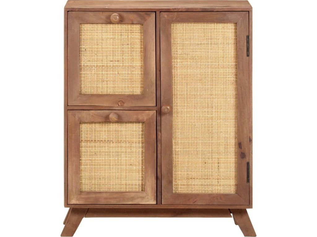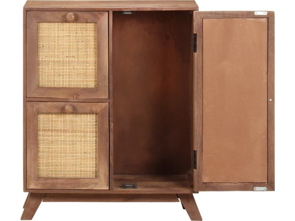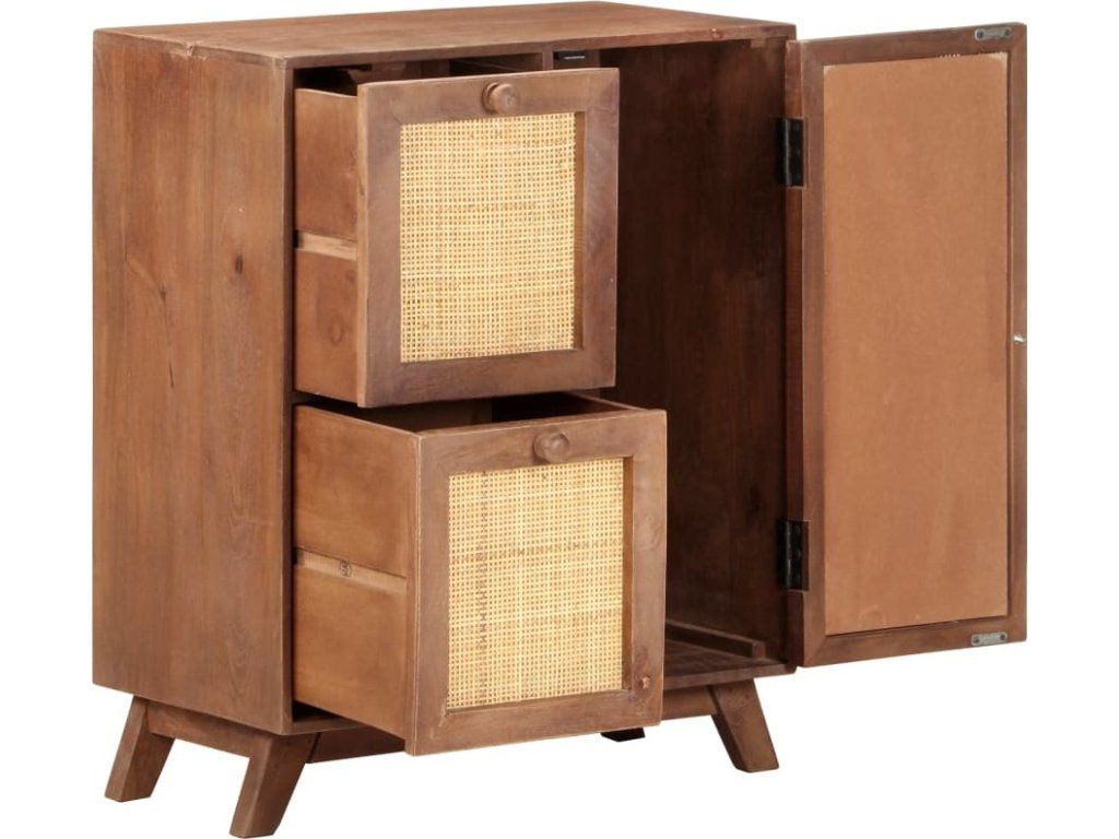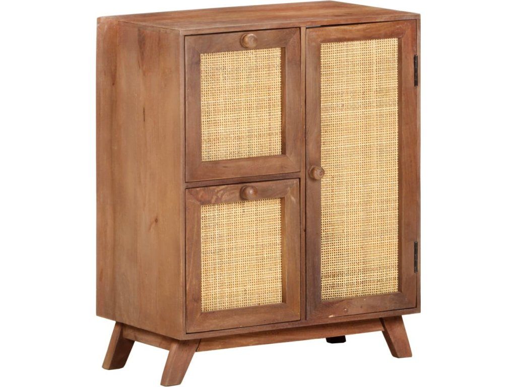 Tato skříňka se zásuvkami je zhotovená z masivního mangovníku, což je tropické tvrdé dřevo, které dokáže unést značnou váhu a skvěle odolává opotřebení i působení času. Každý kus se lehce odlišuje od všech ostatních svým unikátním zručným zpracováním a nádhernou kresbou dřeva. Příborník má 2 zásuvky a 1 přihrádku s dvířky, najdete v něm tedy dostatek úložného prostoru pro vaše věci.